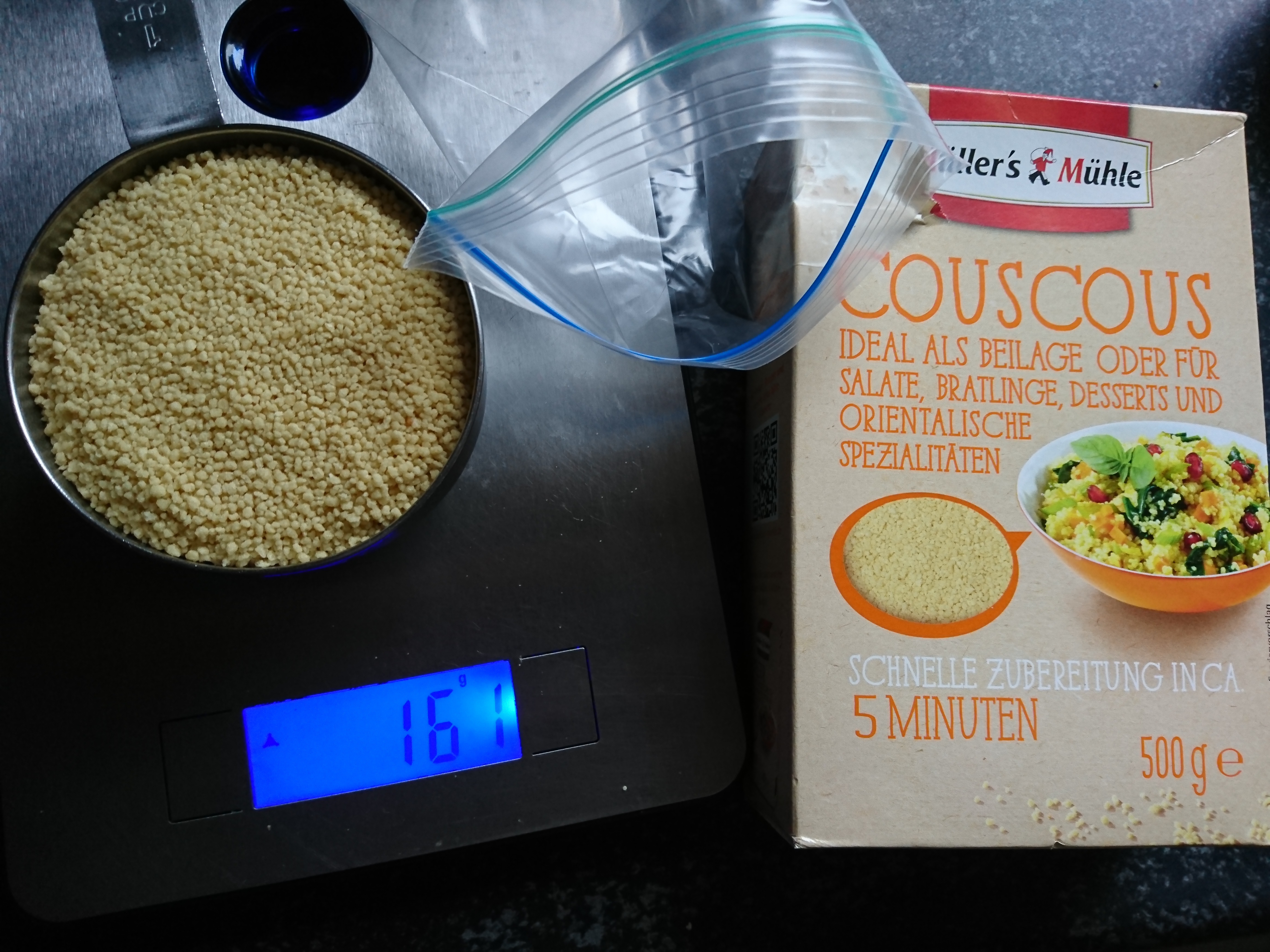 Couscous ist sehr schnell zubereitet und wahnsinnig vielfältig! Reste kann man kalt essen oder sogar nochmal in der Pfanne anbraten. Zum mitnehmen messe ich mir immer meine benötigte Portion ab und beschrifte die Tüte. So spare ich mir das abmessen, habe immer die richtige Menge parat ohne losen Couscous im Auto zu haben