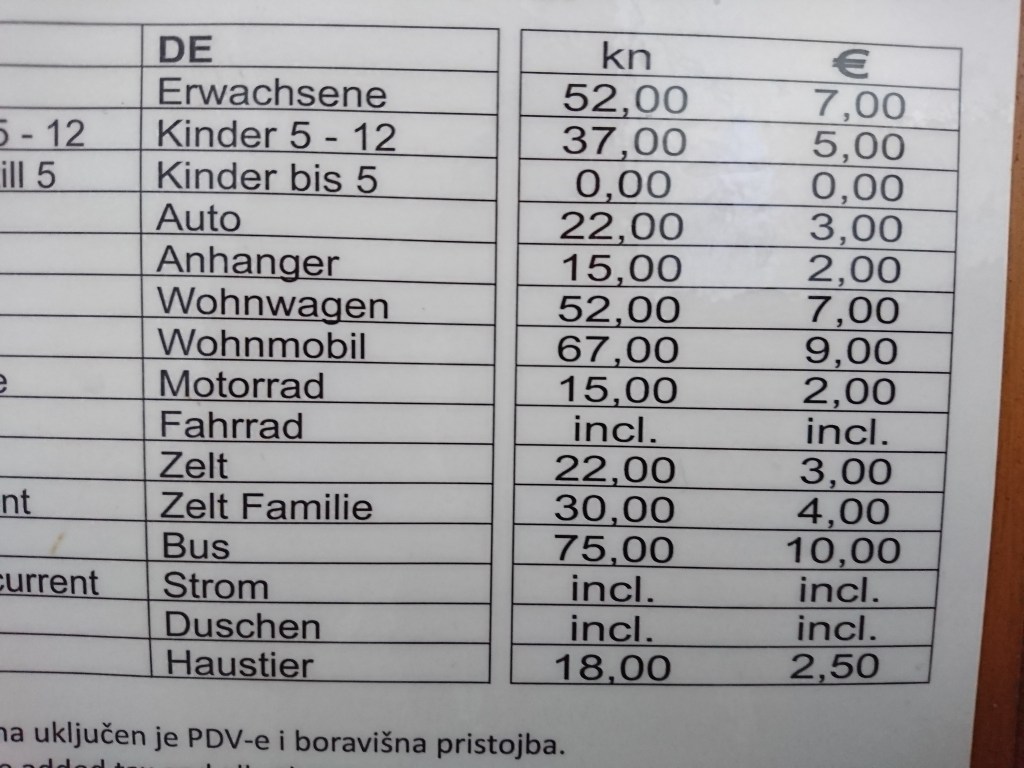 Im Sanitärgebäude gibt es bei den Damen und Herren jeweils 2 Duschen mit Duschvorhang, die im Eingangsbereich des Toilettenraums untergebracht sind, 2 Toilettenkabinen und Waschbecken. Nach Angaben meines Sohnes sind Temperatur und Wasserdruck: “sehr gut“ außerdem ist alles sehr sauber. Außen am Gebäude findet man dann noch Abwaschbecken.
