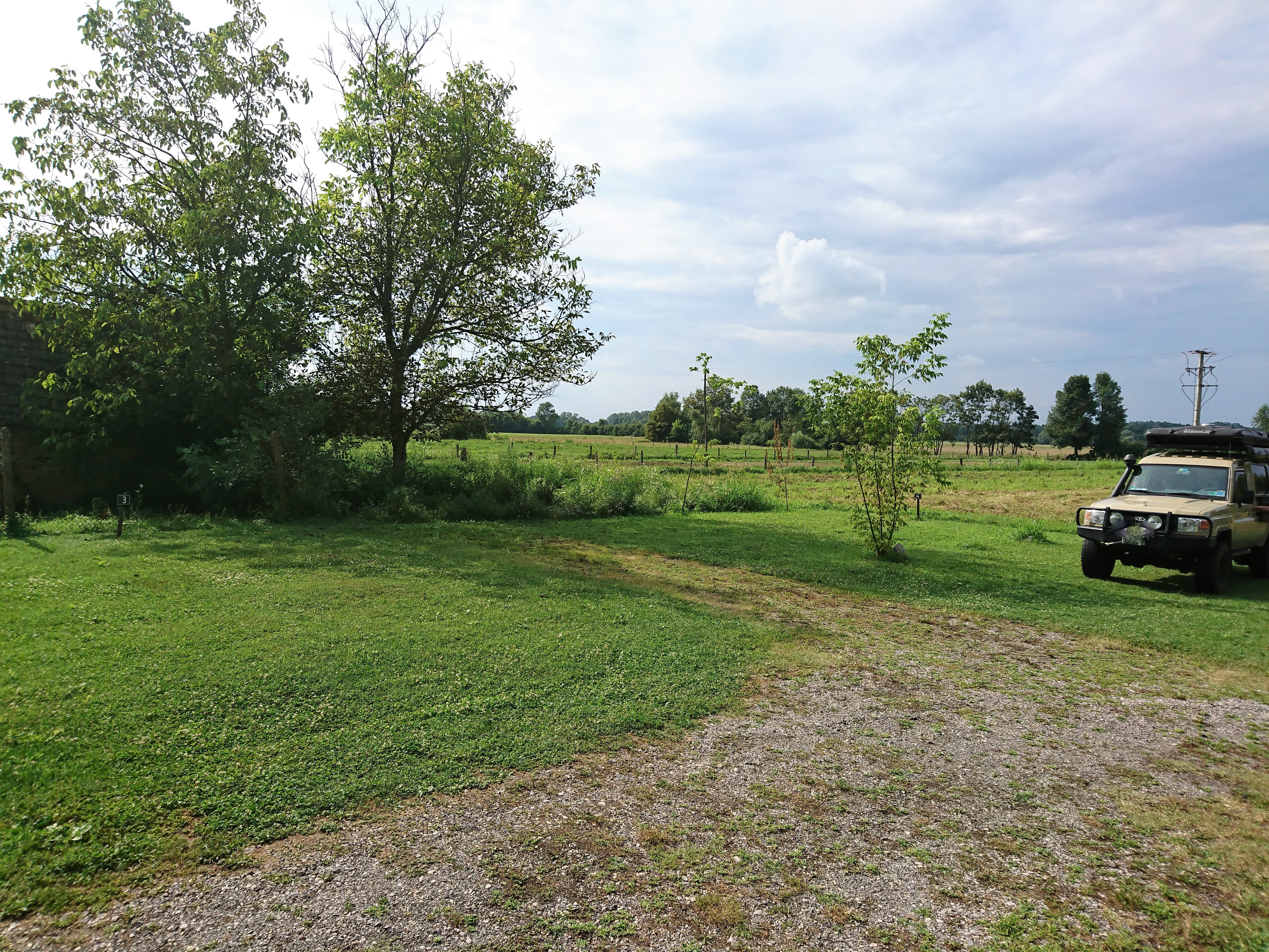 Auf der ebenen, gemähte Wiese sucht man sich ein schönes Plätzchen. Wenn das Feld gerade frisch gedüngt wurde empfehle ich einen Platz weiter vorne zur wenig befahrenen Straße. Denn je nachdem wie der Wind steht, kommt frische Landluft vom Misthaufen des Bauern neben dran oder vom Feld herüber.