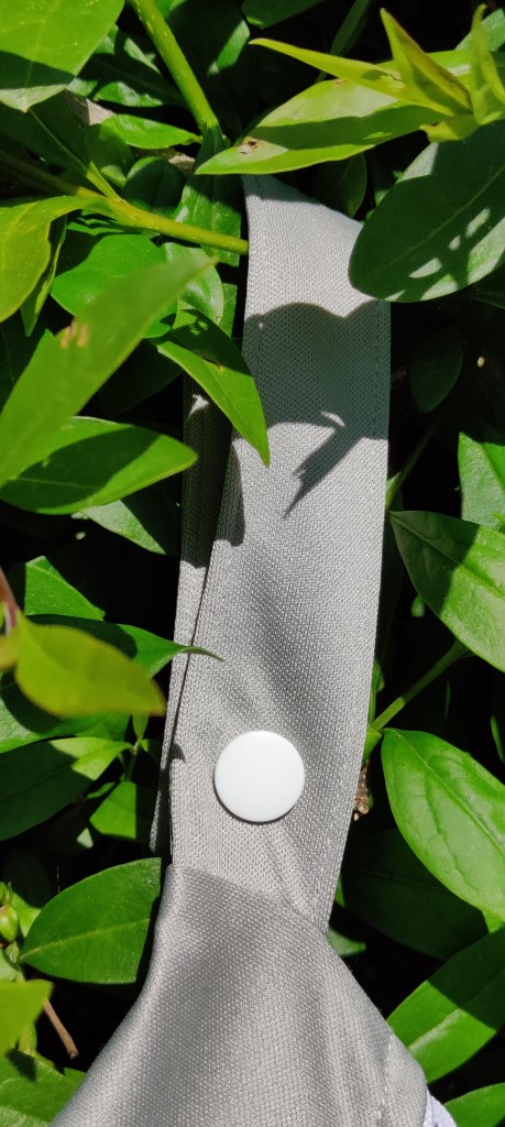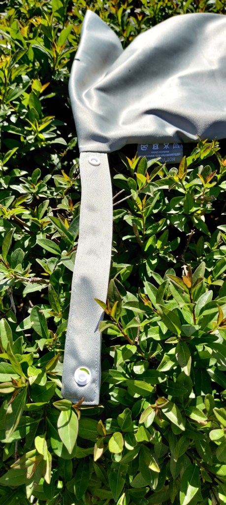 Durch das 2 geteilte, konnte ich die Dosen, die auch im Ausland recycelt werden, gleich separat sammeln. Oder man hat seine Feuchttücher (die Handwäsche unterwegs) darin verstaut. Im anderen Fach sammelte ich den Müll. Die Schlaufe zum Anhängen ist bis zum Knopf ca 8cm lang. Im Toyo haben wir einen Griff am vorderen Holm. Da hängt immer mein Müllbeutel. Der Druckknopf vom Yogabum hält wirklich gut fest.