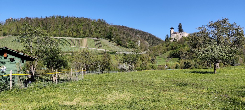 Die Wanderwege sind beschildert, es gibt auch immer wieder Erklärungen zu den Gegebenheiten. Die Wege sind nicht immer befestigt, manchmal bessere Trampelpfade ohne Geländer, die teilweise auch mit Stufen bergauf und ab führen. Wir sind von der Apollogrotte den Hang hinauf zum Schloss Birseck gegangen. Das Schloss ist von Ostern bis Ende Oktober, Mittwochs & Sonntags von 14 Uhr bis 17 Uhr geöffnet. Ausserdem gab es eine öffentliche Toilette und auch einen Ausschank, wer den Turm erklimmt hat eine sagenhafte Aussicht.